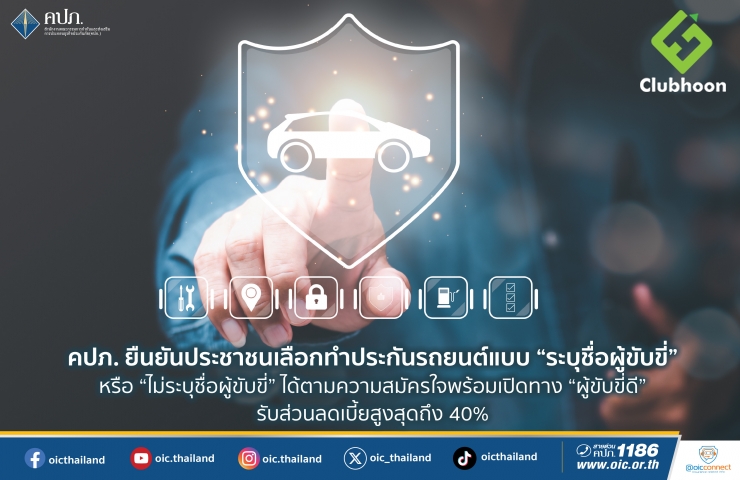 คปภ. ยืนยันประชาชนเลือกทำประกันรถยนต์แบบ “ระบุชื่อผู้ขับขี่” หรือ “ไม่ระบุชื่อผู้ขับขี่” ได้ตามความสมัครใจ พร้อมเปิดทาง “ผู้ขับขี่ดี” รับส่วนลดเบี้ยสูงสุดถึง 40%
