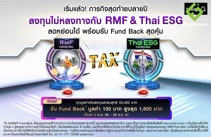 บลจ. ไทยพาณิชย์ จัดเต็มแคมเปญพิชิตภารกิจลงทุนช่วงปลายปี คัดกองทุนลดหย่อนภาษีเด่นทั้ง RMF และ Thai ESG พร้อมโปรโมชัน Fund Back สูงสุด 1,600 บาท(*) เริ่มตั้งแต่วันที่ 3 พฤศจิกายน 2568 – 30 ธันวาคม 2568