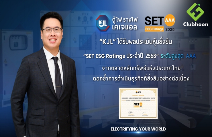 KJL ตอกย้ำความเป็นผู้นำอุตสาหกรรมไฟฟ้า เดินหน้าสู่การเติบโตอย่างยั่งยืน คว้าคะแนน SET ESG Ratings 2025 ระดับ AAA สะท้อนการดำเนินงานที่ใส่ใจสิ่งแวดล้อม สังคม และธรรมาภิบาล พร้อมยกระดับมาตรฐานองค์กรสู่ความยั่งยืนระยะยาว