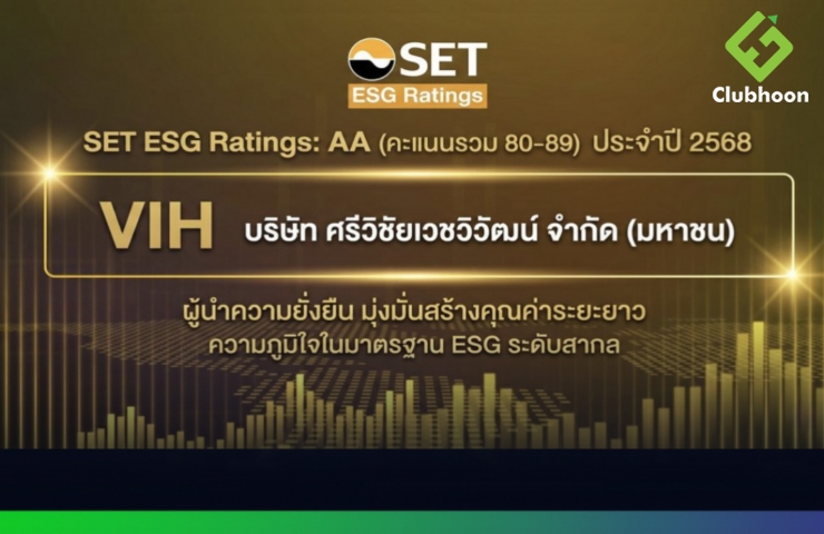 VIH ประกาศความสำเร็จคว้าเรตติ้ง “AA” จากการประเมิน SET ESG Ratings ประจำปี 2568